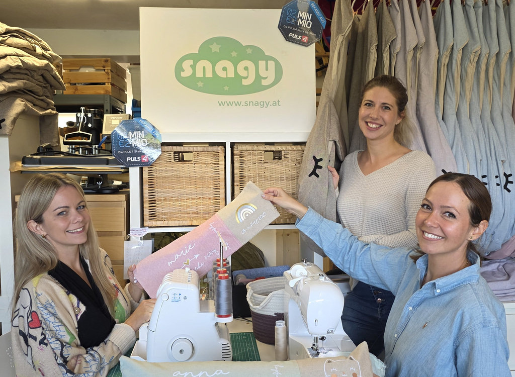 Bekannt wurden die drei Mamas mit ihren Sitzsäcken und den beliebten Geburtskissen, die Gewicht und Größe eines Neugeborenen originalgetreu abbilden. Diese Produkte fertigen sie nach wie vor händisch in ihrer kleinen Snagy-Werkstatt in Baden – jedes Stück ein Unikat, hergestellt mit viel Liebe zum Detail. Bestellt werden können die Textilien über den firmeneigenen Onlineshop www.snagy.at.